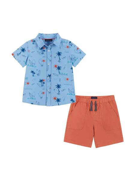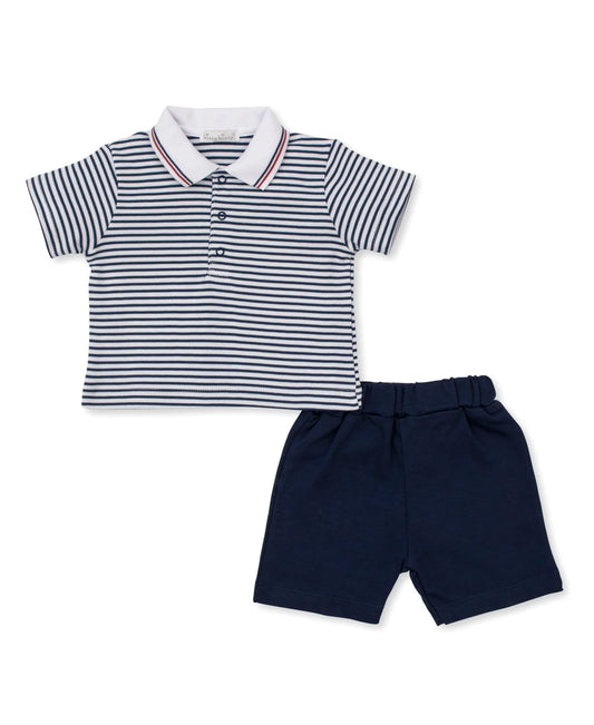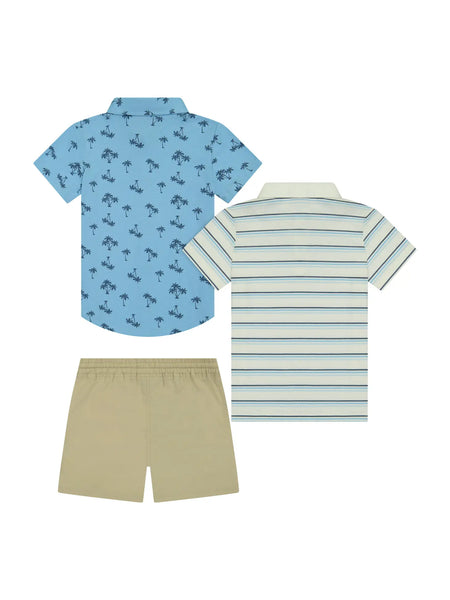 Bamboo Polo Shirt and Muslin Short Dusty Blue