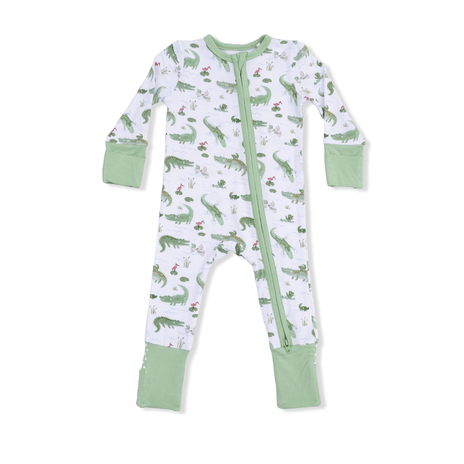 2-Way Zip Bamboo Romper- Crayon Alligator