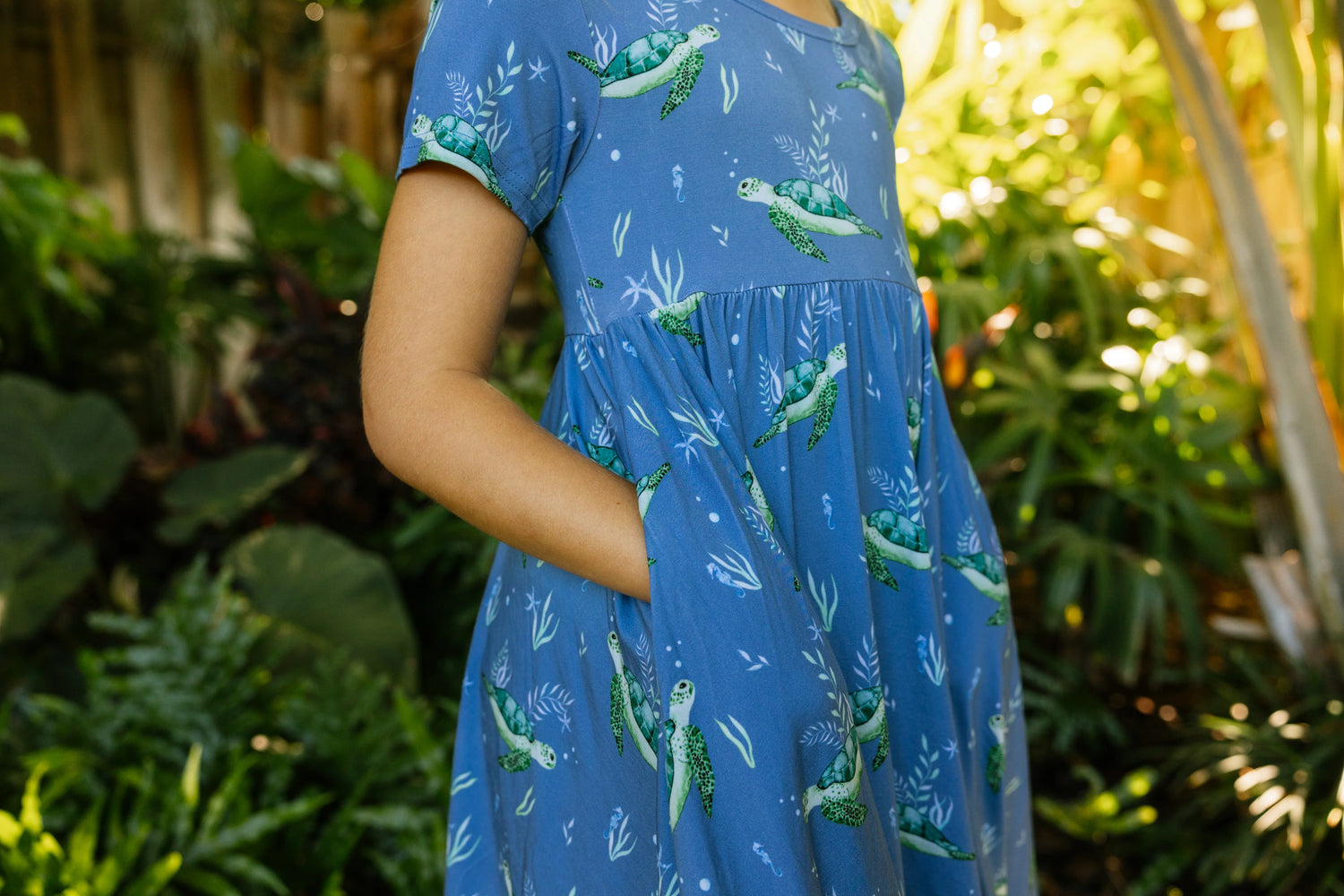 Bring the charm of coastal daydreams to everyday play with our Dockside DaydreamsBamboo Dress. Crafted from our premium 230 GSM bamboo viscose (95%) and spandex (5%) blend, this dress feels as soft and breathable as a seaside breeze — perfect for twirling, exploring, and everything in between.