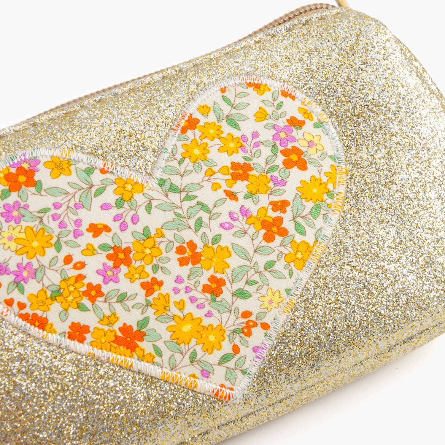 This sweet sparkle purse with heart is one of our all-time favorites. Adorned with vintage floral heart patch, it has a beautiful nostalgic feel. Great for all seasons, dressing-up and gifting! Features buckle adjustable shoulder strap.