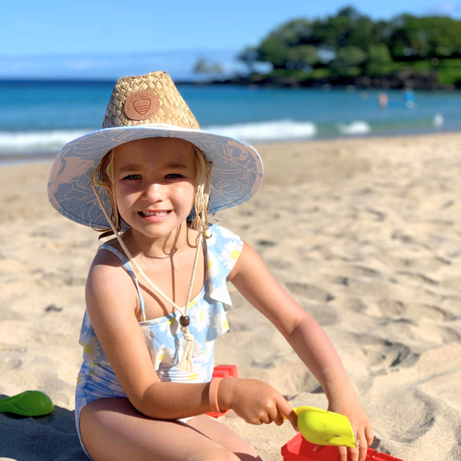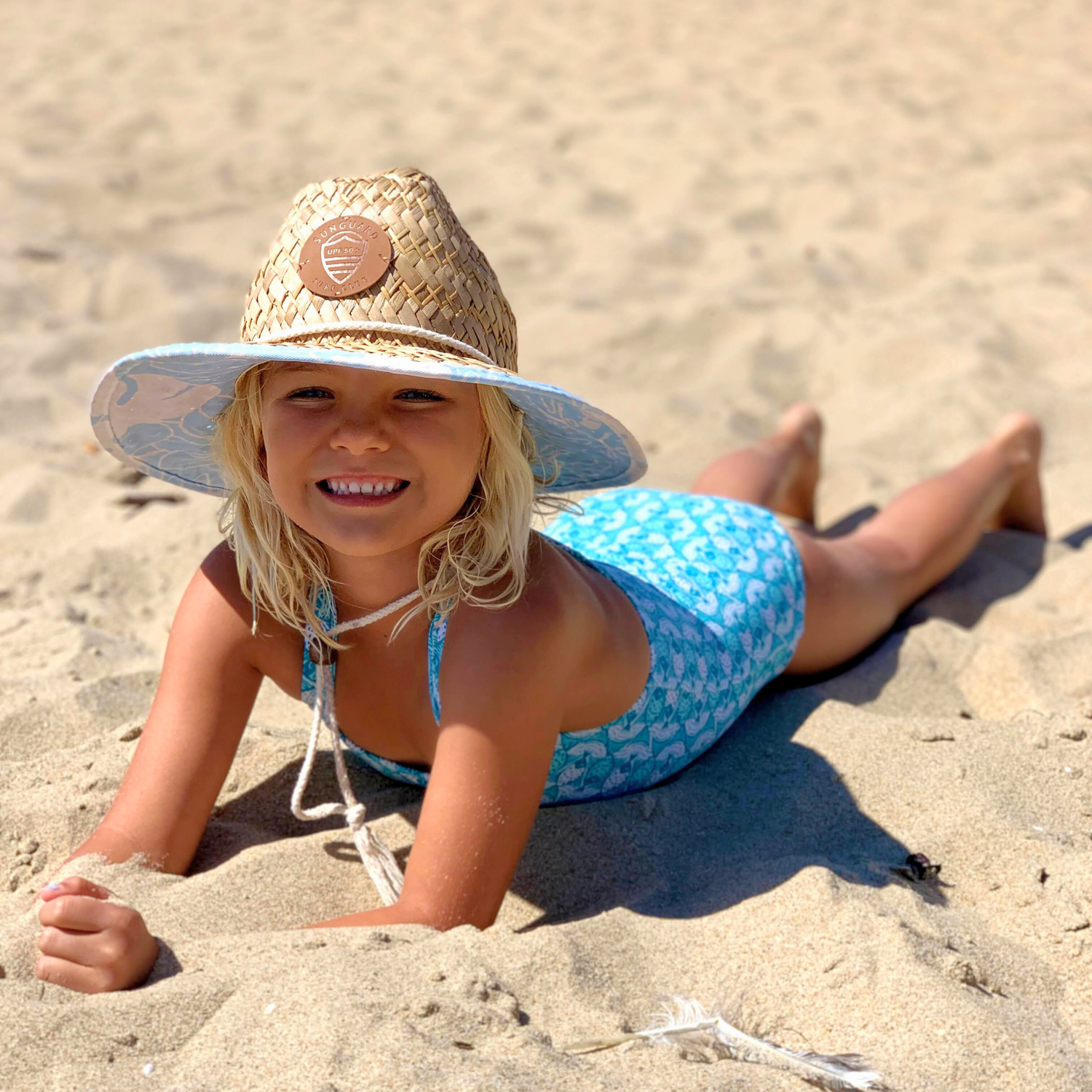 Get outside and adventure in our straw lifeguard hat for boys and girls. Woven of 100% natural straw fibers and featuring a large brim with UPF50+ material, our lifeguard hat offers optimum sun protection ensuring harsh UV rays are blocked from precious faces.