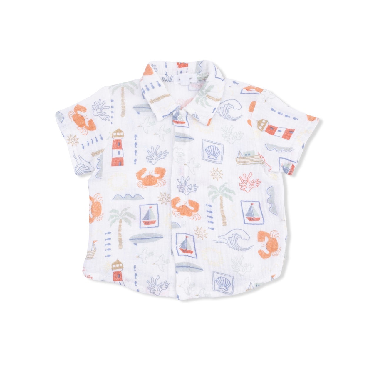 Keep little ones comfy and stylish all day in our Polo Button-Up with Casual Short Set! The top is made from soft, breathable organic cotton muslin, perfect for delicate skin, while the shorts feature a drawstring waist and functioning pockets for a practical, easy fit.