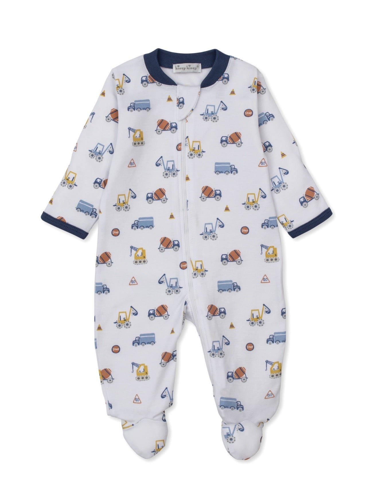 Your baby will be ready for a day of fun in our construction roadwork print zippered footie. Made from the softest Pima cotton for ultimate comfort.