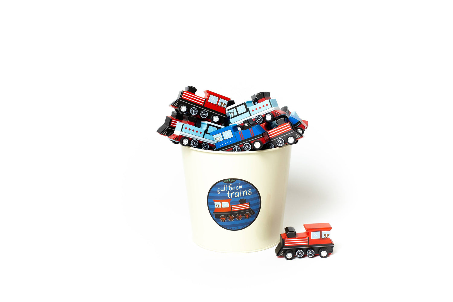 Kids love trains, especially these colorful pull backs. Perfectly shaped for little hands, pull back the toy and then release to watch it steam on down the track. All aboard!
