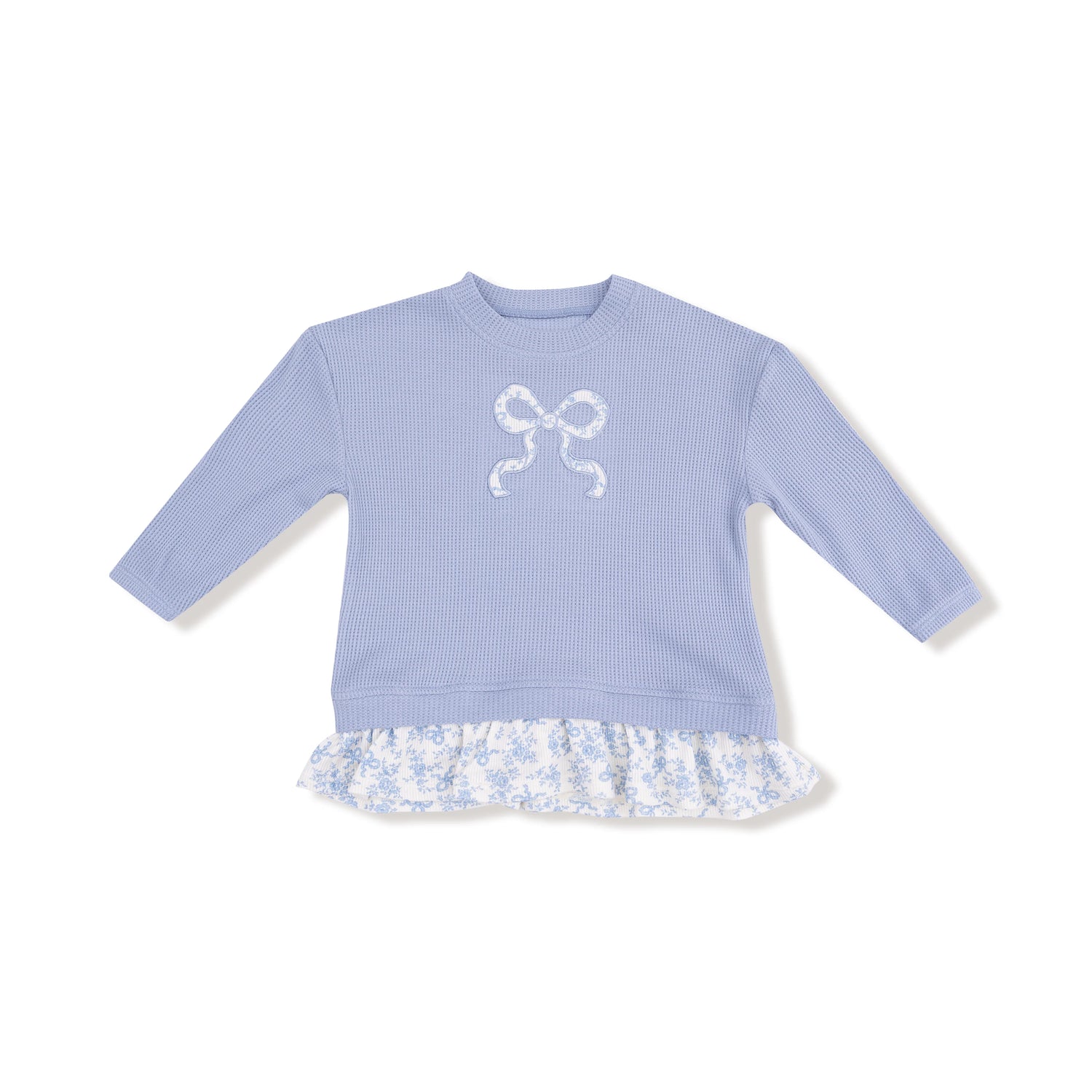Snuggle season is here! Our waffle knit pullover with sweet ruffle details pairs perfectly with soft ribbed leggings to keep your little one comfy and stylish all fall and winter long.