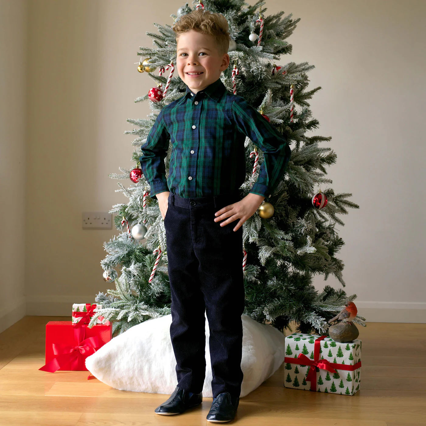 Get your little one ready for any occasion with our Blackwatch Check Shirt! In classic navy and green tartan, this shirt adds a touch of timeless style to any outfit. Keep your tiny trendsetter looking sharp and festive all year round with its classic collar and on-trend design.