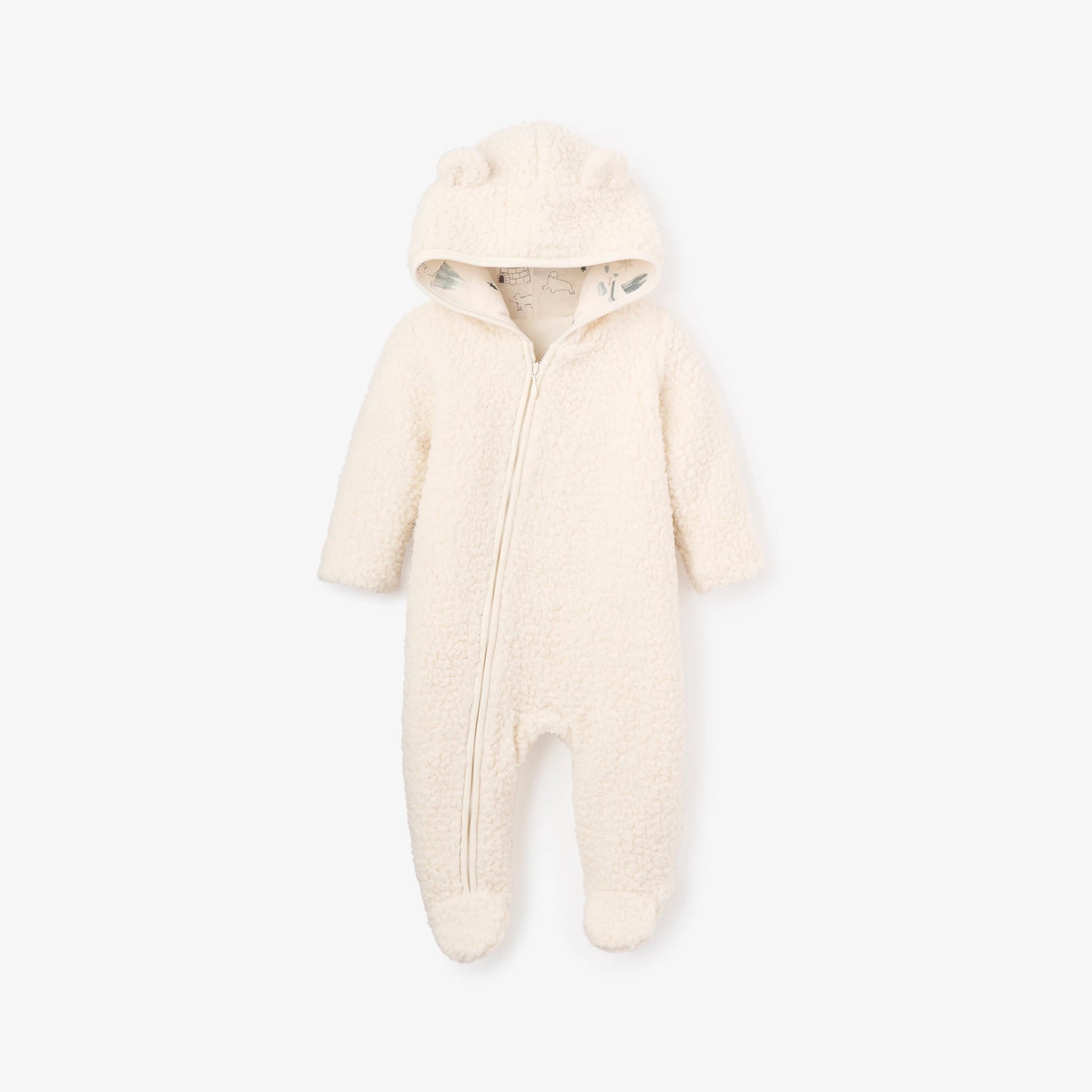 Made for frosty days, this ultra-cozy sherpa snowsuit features a whimsical Arctic animal print lining– keeping baby warm and cozy through winter fun.