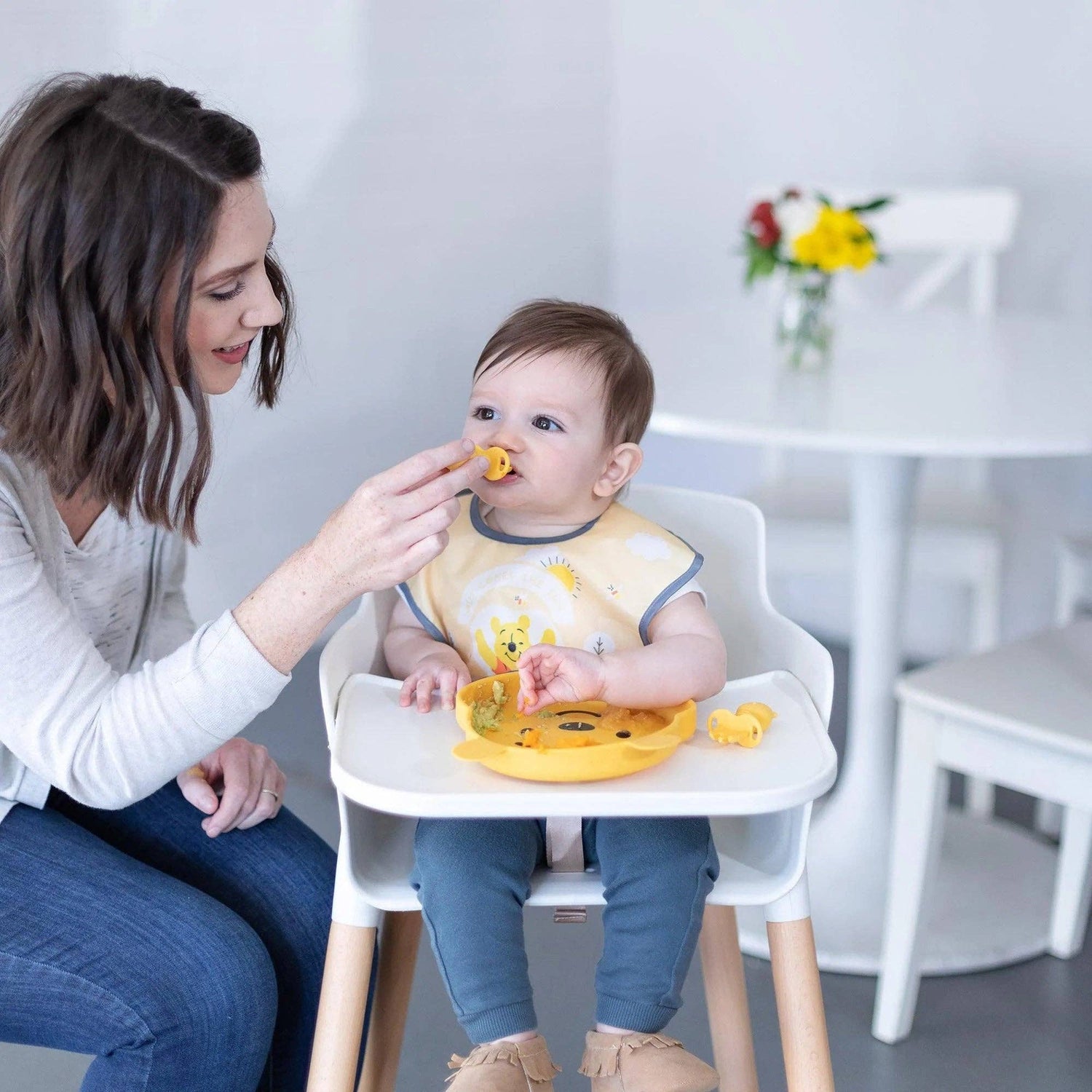 Inspired by your favorite honey-loving bear, Winnie the Pooh. Our Chewtensils are intended for Stage 1 of baby-led weaning – introducing babies to the concept of holding a utensil and feeding themselves. We made Chewtensils from soft, textured silicone that’s easy to grip and gentle on tender gums, with bendable heads for safety.